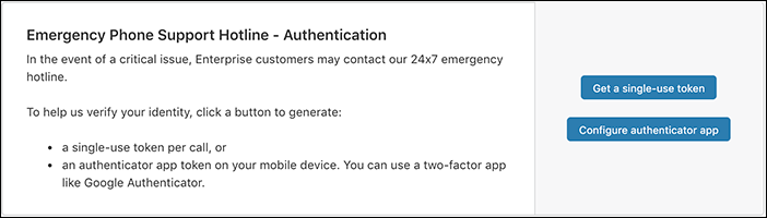 3. Cliquez sur Contact Support (Contacter le support). Faites défiler l’écran vers le bas jusqu’à la carte Emergency Phone Support Hotline - Authentication (Support téléphonique d’urgence - Authentification).